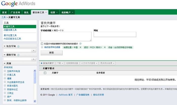??首先給出GoogleAdwords關鍵詞分析工具的地址:https://adwords.google.cn/o/Targeting/Explorer?__u=1000000000&__c=1000000000&ideaRequestType=KEYWORD_IDEAS#search.none